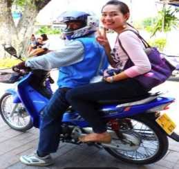「ねえ、皆さん。単車乗ったことある? この前ねぇ、あの渋滞に引っ掛かって会合で遅刻しそうになったとき、散々迷ったんだけど、この状況を抜けるにはもう"単車タクシー"しかないと覚悟したの。自分の車は運転手に任せて、直ぐに来た単車に跨ってスイスイと車の波をかき分けたのよ、まあ早いのなんの。でもジグザグに、そしてバンバン飛ばすもんで、 必死で運ちゃんにしがみ付いたら何とまあ、翌日、見たわよって2人も電話が掛かってきちゃってさぁ。皆さん、単車に乗るときはスカートはお控えなさいまし」