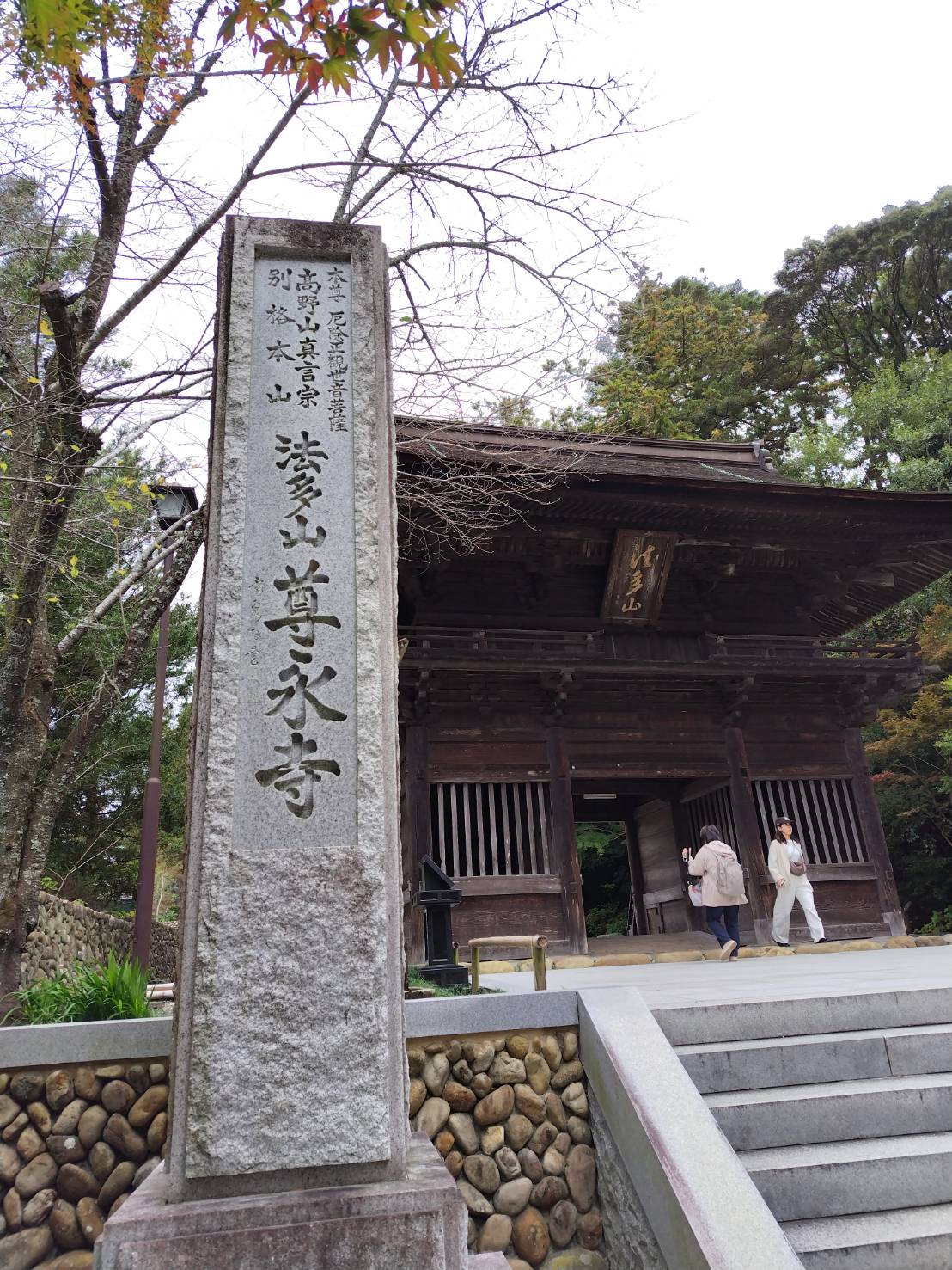 掛川インターから20分、駐車場から続く長く緩い上り坂の参道には所々紅葉が始まっていた。