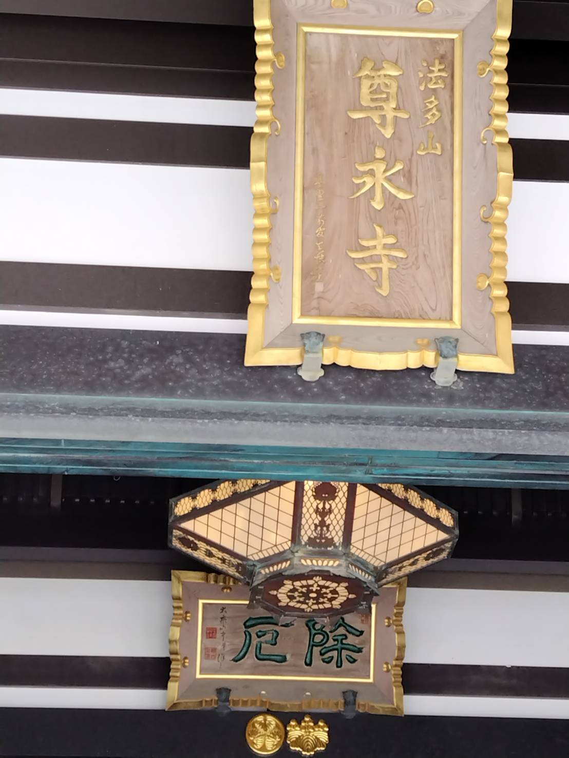 その後、今川、豊臣、徳川など武将の信仰を得て、特に慶長7年(1602)家康より五万石の格式をもって遇せられ、一山、十二坊の宝燈が栄えたが、明治維新に朱印地返還、十二坊を廃して総号尊永寺と改め今日にいたる。
