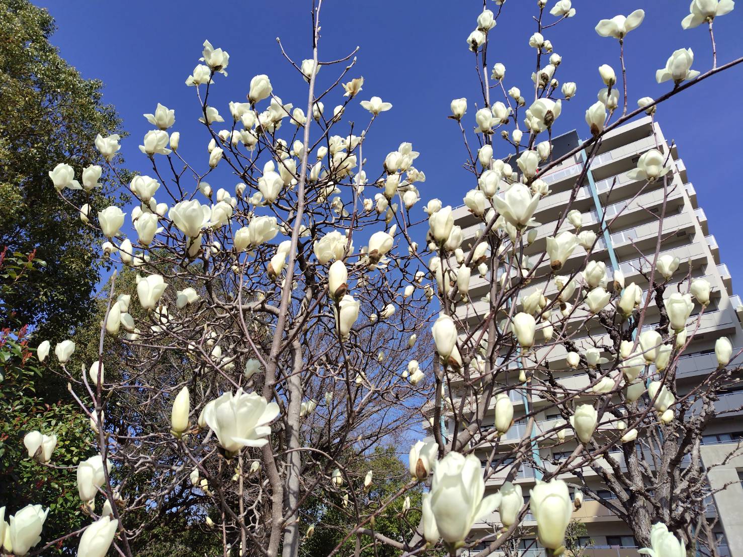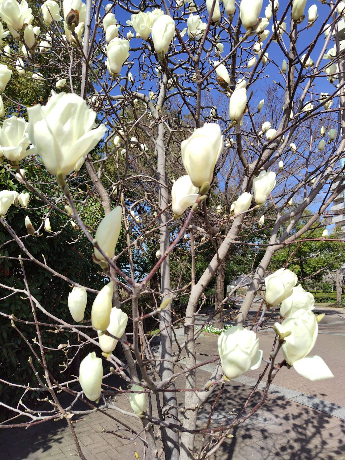 ホーム > 寿禄会インスタグラム > コブシが花盛り 2026/03/09 9日10時、好天に誘われ散歩へ。 吹く風は冷たいが、公園や住宅街はすっかり春の風情。 先日開花したコブシはもう満開に近い。白い花々が青空に映えて美しい。 WBC、日本は豪州を下し、一次リーグを首位通過。 テレビ中継がないのがもどかしいが、連覇への期待が高まる。 - 寿禄会インスタグラム 田中功也