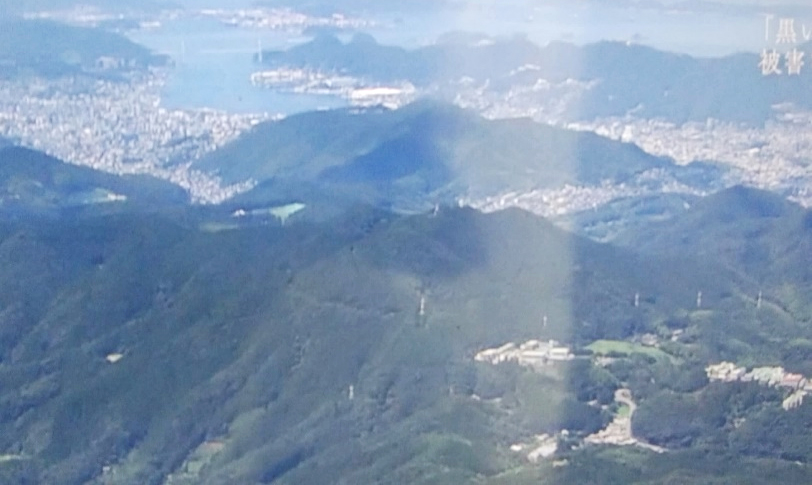 ◆中央が金毘羅山、その右奥が爆心地。左上が長崎港。