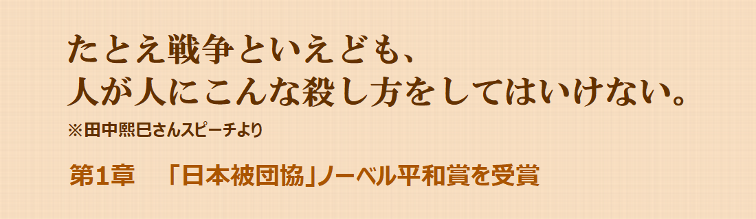 核兵器の非人道性を語り継ぎ、核廃絶の必要性を唱えてきた日本被団協(日本原水爆被害者団体協議会)が、12月10日ノーベル平和賞を受賞した。フリドネス委員長「被爆者の目撃証言に耳を傾け、心を開いて欲しい」の挨拶の後、代表者、田中熙巳氏はこう演説した。