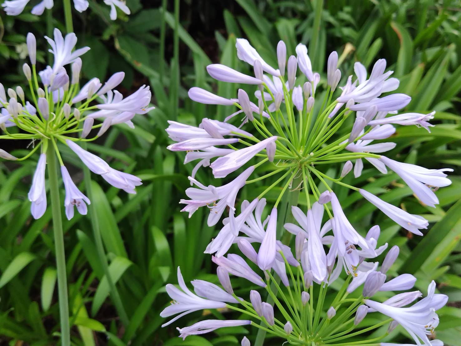 ホーム > 寿禄会インスタグラム > 咲き始めたアガパンサス 2025/06/26 (いつものように写真のクリックで、拡大写真を見ることが出来ます。) koya tanaka 田中 功也 雨のやみ間、25日夕方5時半少し遅い散歩へ。 庭でも咲き始めているが、遊歩道のアガパンサスがより見事に花を咲かせている。 27日からまた晴れて暑い日が続くという。 大雨はごめんだが、あまり早い梅雨明けも困る。たっぷり雨を降らせてからにしてほしい。 大して歩いていないのに、戻るとかなりの汗をかいている。 - 寿禄会インスタグラム 田中功也