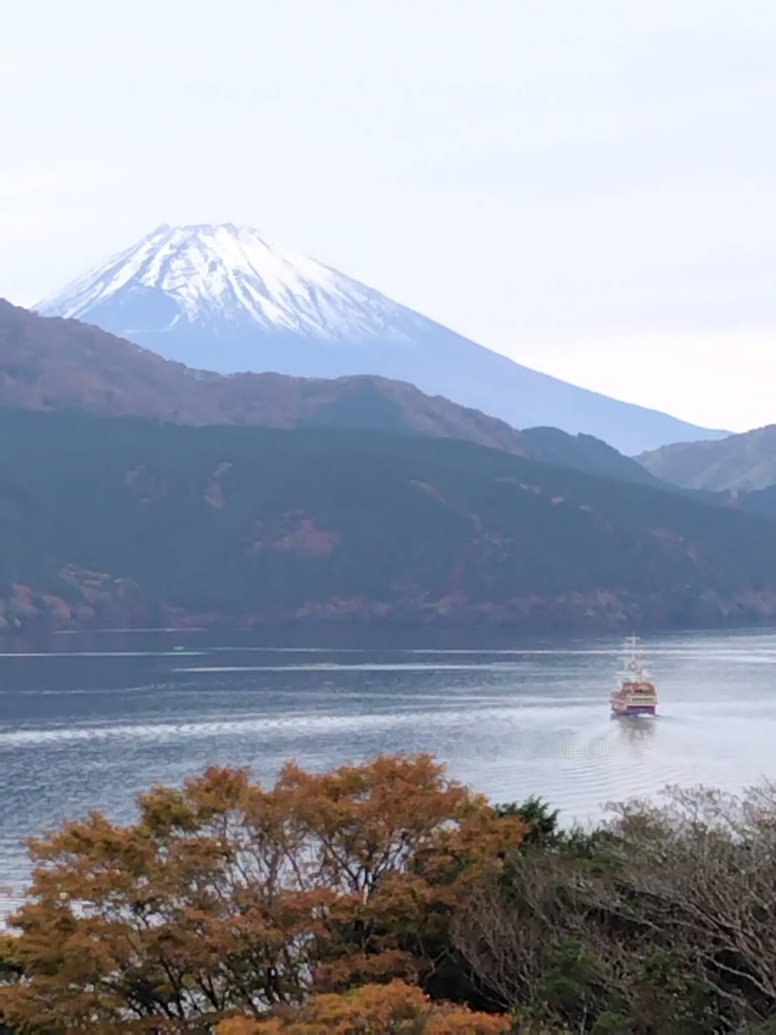 ホーム > 寿禄会インスタグラム > 富士二景 2025/11/13 (いつものように写真のクリックで、拡大写真を見ることが出来ます。) koya tanaka 田中 功也 ①11月13日11時半、恩賜箱根公園から見た「芦ノ湖に浮かぶ海賊船と富士山」 ②③伊豆半島修善寺自然公園の富士見台から見た傘富士 - 寿禄会インスタグラム 田中功也