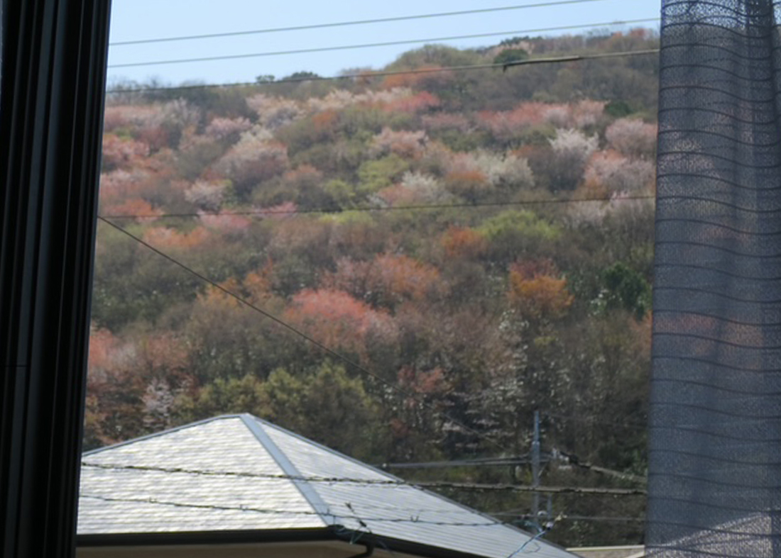 ホーム > 短歌 > 寿禄短歌の会・黒川勝利(9)◎余花の雨の候 2025/04/14 岡山の市街地と我が団地とを隔てている山を半田山という。京都の東山とは比べようもない小さく低い山だが、「布団着て寝たる姿」という形容詞が当てはまりそうなくらいに、なだらかに横に長く伸びており、書斎の窓から見える四季折々の風景は心を和ませてくれる。そして今はもちろん桜である。 ◆書斎の窓からの眺め/半田山 「酒なくて何の己が桜かな」という俳句(もしくは川柳)に共感する人は少なくないだろう。私ももちろん…と言いたいところだが、医師の指示で現在は禁酒中。しかしながら、桜へ寄せる気持ちに変わりはない。 話変わって、3月中旬の我が庭の主役はハクモクレンであった。その純白の花はまことに見事であった。添付の写真は、その花びらのほとんどが散ってわずか三輪ほどが残っていた3月31日の撮影であるが、それでもなお、女王然として他の木や花に君臨していた。 そのすべてが散ってしまった今、我が家の庭ではビオラ、アネモネ、チューリップ、水仙、アイリスなどが美を競っている。その中で主役を選ぶとすれば、やはりチューリップであろうか。 ◆ハクモクレン ◆チューリップ ◆白や紫の花 - 短歌 黒川勝利