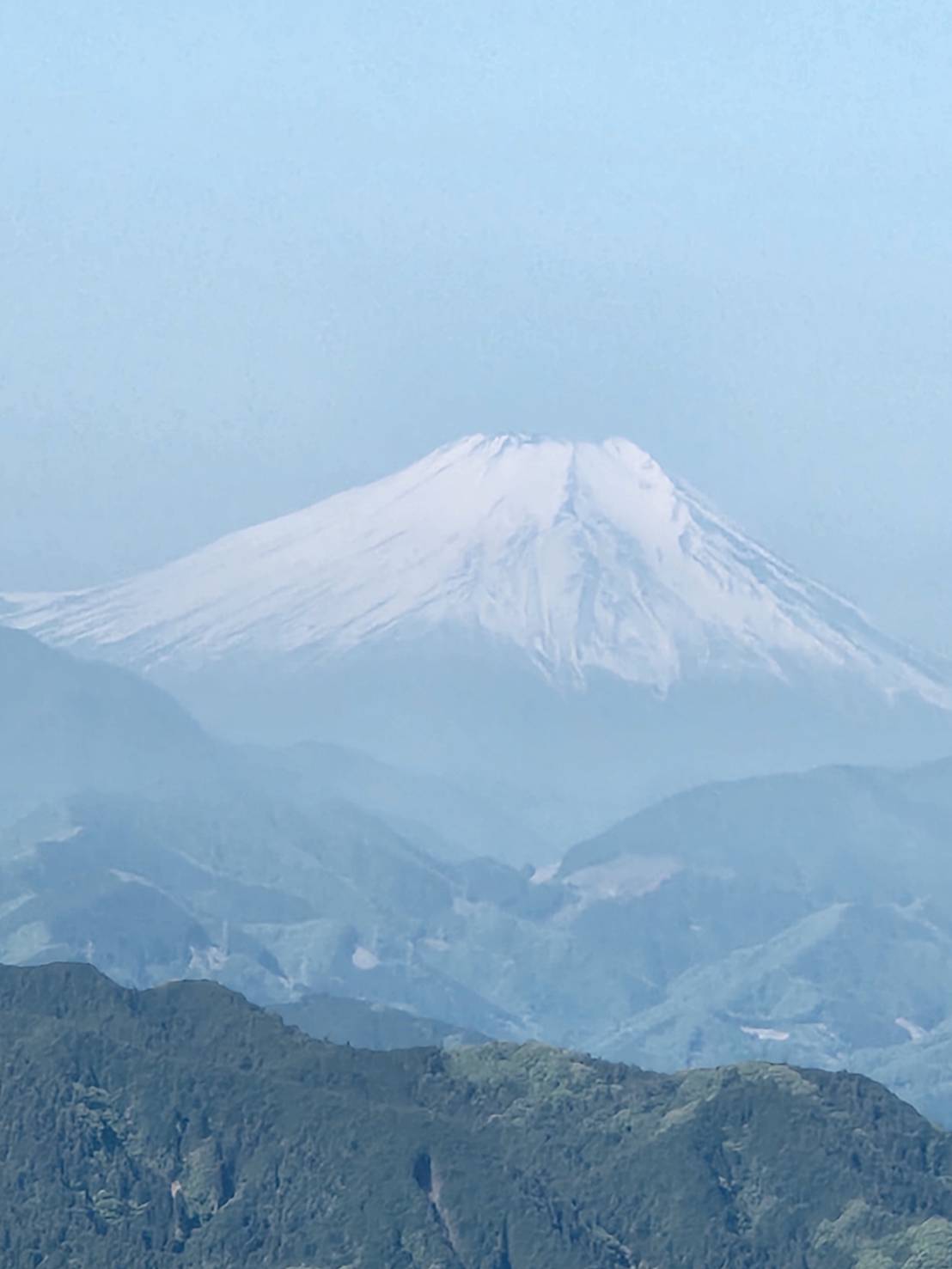 最後は、急な階段200段を登り切り山頂へ。富士山に挨拶、復路は追っかけをしているブナの大木に挨拶、新緑から深緑への緑あふれる山路を満喫し、爽やかな空気もしっかり味わった、大満足の3時間でした。