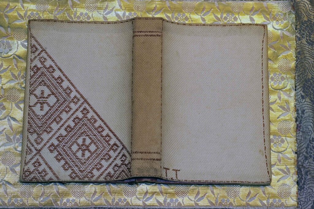 左:感性豊かな白男川さんの作品、右:白男川さんからいただいた刺繍のブックカバー