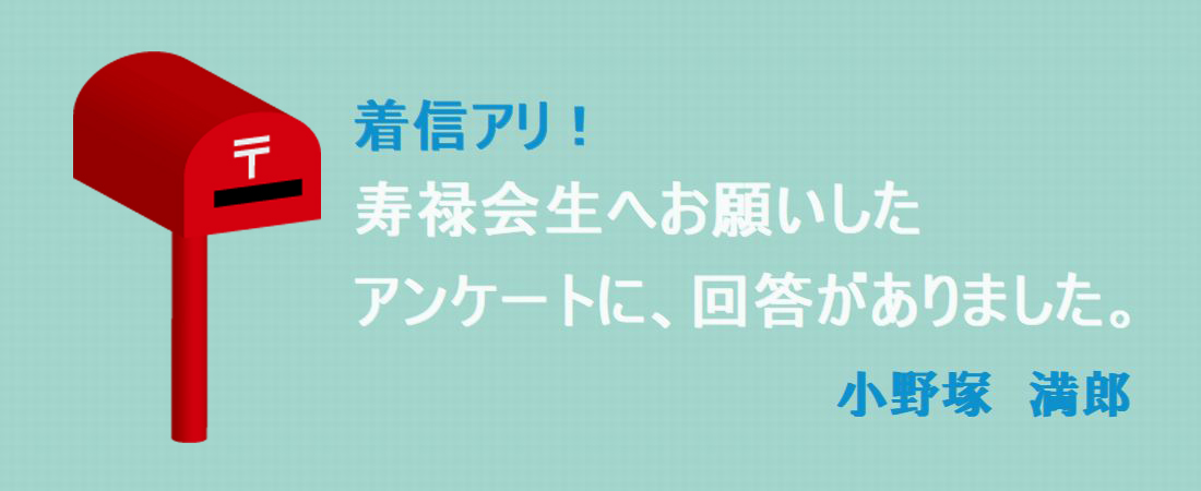 ホーム > お知らせ > 着信アリ!小野塚満郎 2025/04/27 アンケートにご協力、ありがとうございました。 寿禄会生に行ったアンケートに、お寄せいただいた回答を紹介するコーナーです。 皆さまの近況報告、会員相互の深掘り理解を深める掲示板としてご活用ください。 《アンケートの回答》 ①「元気確認」の意味を込めて、近況をお知らせください。 新橋で独り生活をしている息子のサポートで、新橋週3日⇔めじろ台4日の生活リズムを継続しています。八王子から都心へ、会社員時代の通勤を含めると、半世紀通い続けています。 ② 趣味を教えて下さい。 コロナの影響で休んでいたゴルフを再開しました。元同僚の財務仲間の同窓会をきっかけに、ゴルフコンペをするようになりました。 ③ ライフワークとして取り組んでいることはありますか? 健康維持を目標に、週一の高尾山歩きを2月から復活。近くの浅川土手を散歩しています。その効果で気力・体力の維持ができています。山路、コンクリート路、ガレ場路、石、岩、木の根がある路も歩けます。 ◆私が日ごろ散歩する浅川土手の桜並木です。 ③ 好きな作家と、感銘を受けた作品を教えて下さい。 山本周五郎「ながい坂」 他多数 ④ 好きな音楽家、歌手など、思い出に残る一曲を教えて下さい。 磯部 俶「はるかな友に」 【編集部注】昭和26年、早稲田大学グリークラブの合宿で、磯部俶の作詞作曲により誕生。その後、ボニ―ジャックスがレコードリリース、NHKの《みんなのうた》に取り上げられて全国に広がり、多くの人に歌われるようになった。 ボニ―ジャックス「はるかな友に」のYOuTubeはこちら ⑤ 心に残っている映画は何ですか? 好きな映画スターは誰ですか? ジョンウエイン「黄色いリボン」 他多数 ⑥ ヒーローとして尊敬する人物は誰ですか? 居るけど書けません。 【編集部の余計な想像】あの人かな? ⑦ 座右の銘にしている言葉はありますか? 母の言葉「自分の体は自分で守れ」 ⑧ これまで見た風景の中で、もっとも感動したのはどんなシーンですか? 千葉房総沖の釣り船から見た夜明けの空の色。海面も一面まっ赤に染まり、荘厳な美しさに息をのみました。 ⑨ これまで食べて美味しかった、最高のディナーは何ですか? 自分で釣りあげた8キロのヒラメのフルコース。 ⑩ できればやり直したい、人生の忘れものはありますか? 高校、大学を通じてサークル活動・支援活動に専念し、いわゆる勉学等は一切してきませんでした。当時は社会情勢も不安定で、学生運動なども盛んでしたし。もう少し学校での学業にも力を注げばよかったかなと感じています。 以上です。 - お知らせ 小野塚満郎
