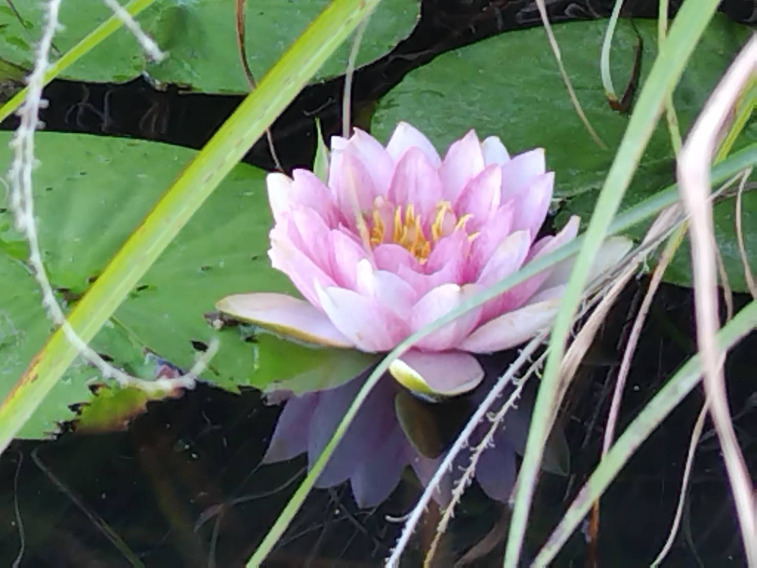 睡蓮は多年生の水草。地下茎から長い葉柄を伸ばし、水面に浮水葉を浮かべる。