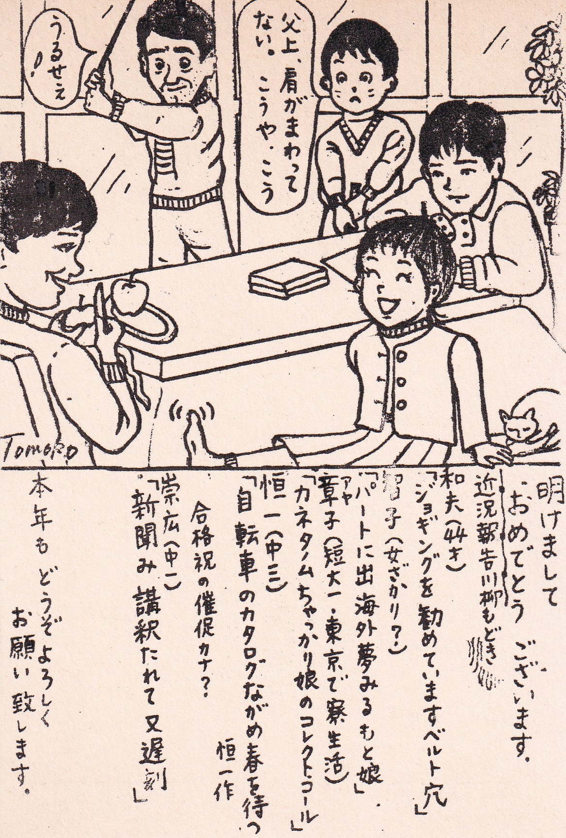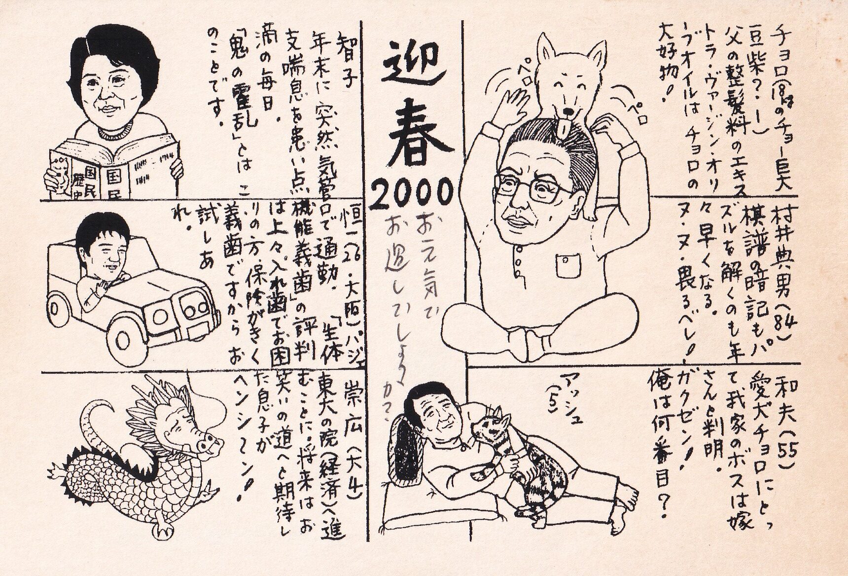 子どもたちが結婚し、孫が生まれると、やがて孫も年賀状に登場するようになりました。いまでは、二十歳を超えた孫が、昔の年賀状をめくり、父が子どもだった頃の年賀状を見て、くすくすと笑っています。