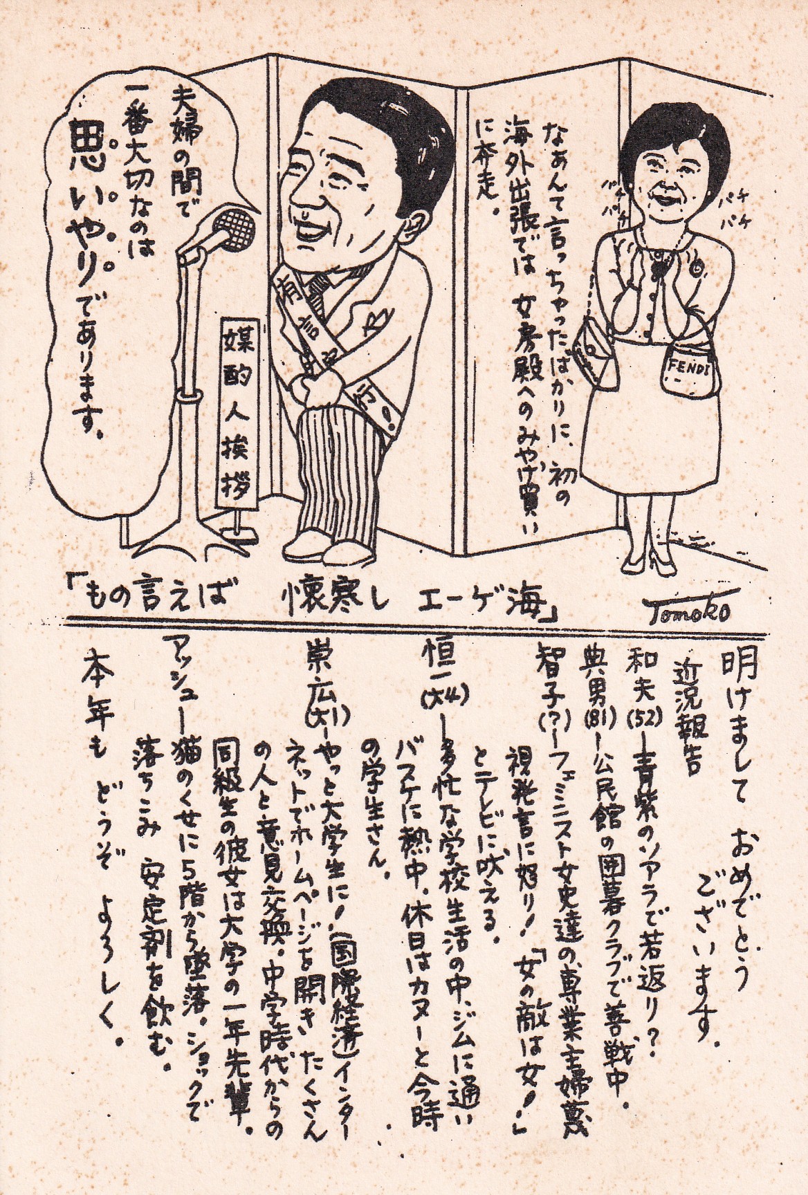 これまでに出した年賀状をハガキホルダーから取り出して見返してみると、人生の春夏秋冬──どの季節も、おっちょこちょいながらも面白おかしく生き抜いてきた日々だったと感じます。